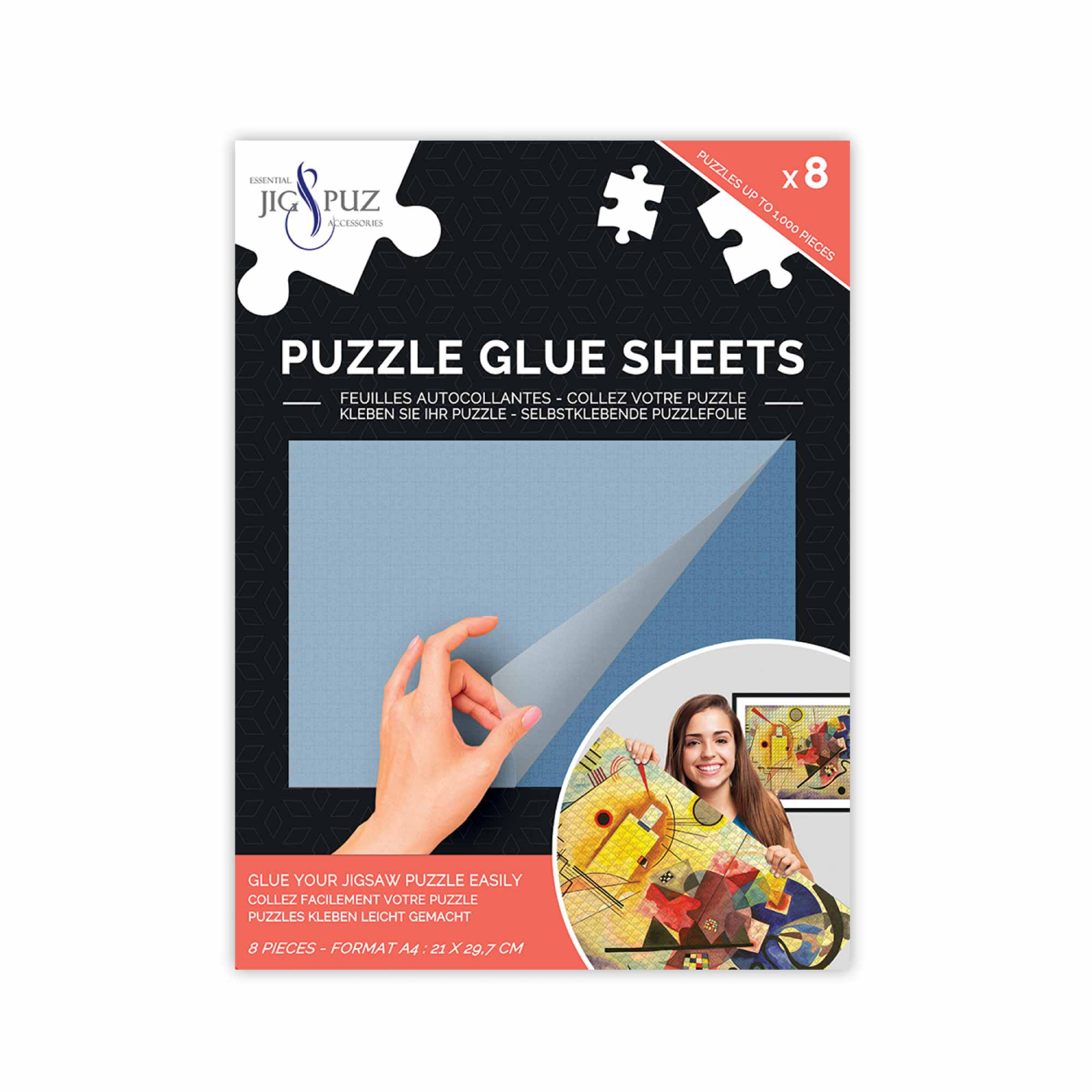 Preserve your favorite 1000-piece puzzle with Jig & Puz’s “Puzzle Glue Sheets”. Frame the completed puzzle and hang it on the wall for display.